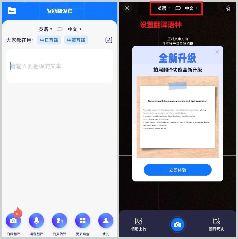①首页点击【拍图翻译】进入。