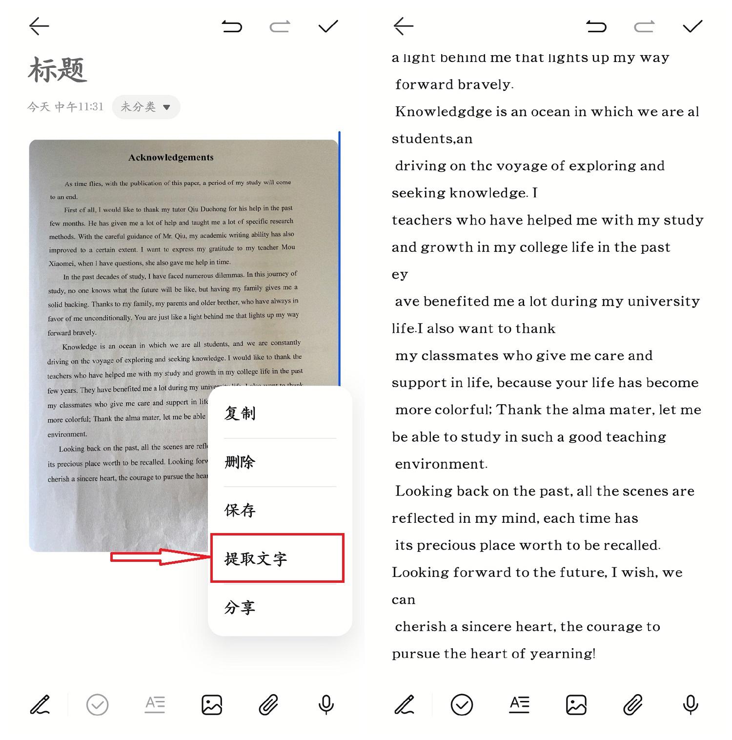 现在很多手机的备忘录是支持翻译功能的,也可以拍照或是导入图片,这里给大家演示荣耀手机的使用演示。
