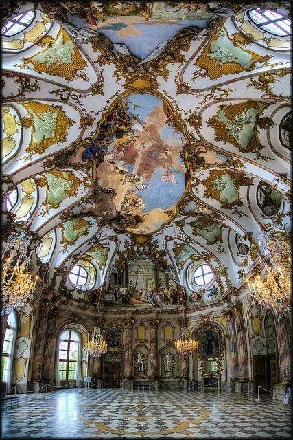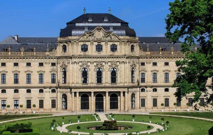在法兰克福和纽伦堡之间的河谷盆地里,坐落着德国最宏大、壮丽的巴洛克式宫殿——维尔茨堡宫殿。