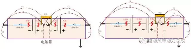 接触器放置于电池中间时,当接触器粘连失效时,电池正负极存在电压为UBattery。