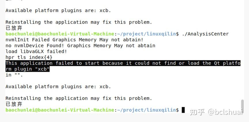 This application failed to start because it could not find or load the Qt platform plugin "xcb"