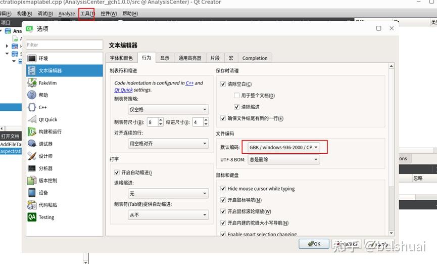 在QtCreator中,工具-选项-文本编辑器-行为将默认编码改成GBK,保存后,再关闭原来打开的文件(打开的还是原来的utf8,不会自动刷新),重新打开;中文就正常显示了;