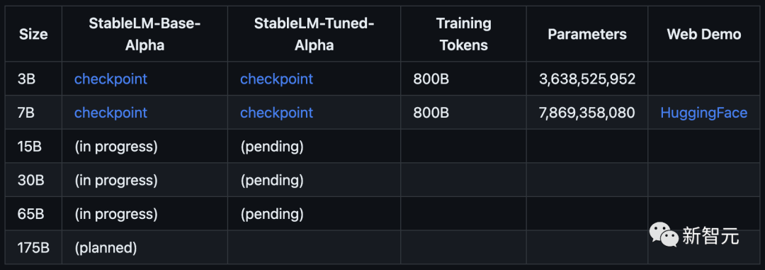 模型从3B和7B参数开始,随后会有15B到65B的版本。