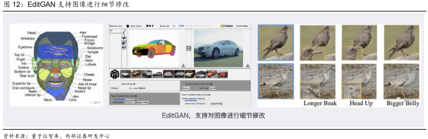 图像部分编辑部分,指部分更改图像部分构成(如英伟达CycleGAN支持将图内的斑马和马进行更改)、修改面部特征(Metaphysics,可调节自身照片的情绪、年龄、微笑等;以Deepfake为代表的图像换脸)。