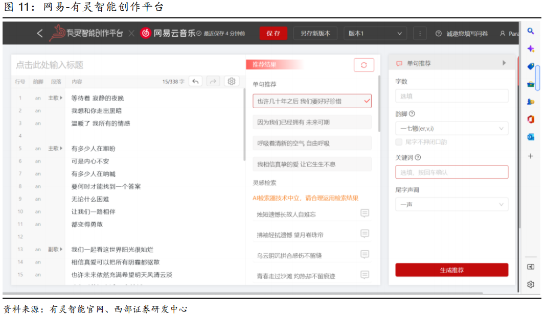 除去端到端进行文本创作外,辅助文本写作其实是目前国内供给及落地最为广泛的场景。主要为基于素材爬取的协助作用,例如定向采集信息素材、文本素材预处理、自动聚类去重,并根据创作者的需求提供相关素材。
