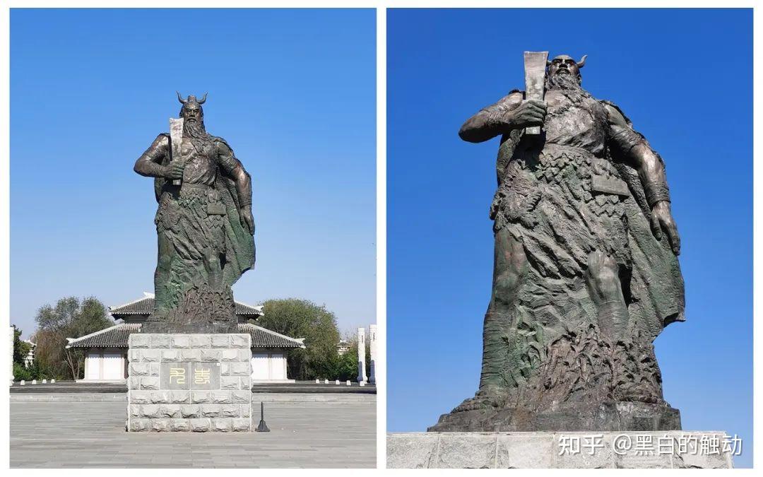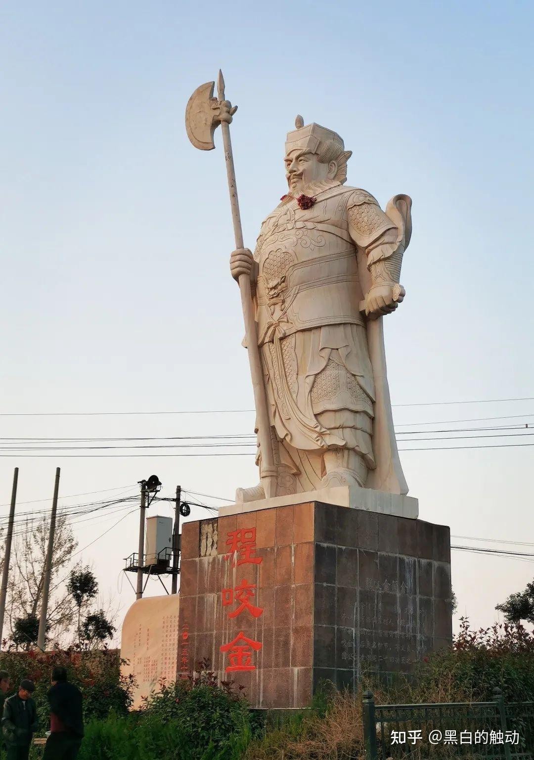 景阳冈之后继续东行,路过东平县斑鸠店镇,这里是唐朝开国名将——程咬金的故乡,镇口有程咬金雕塑,手持三板斧,气势威严。