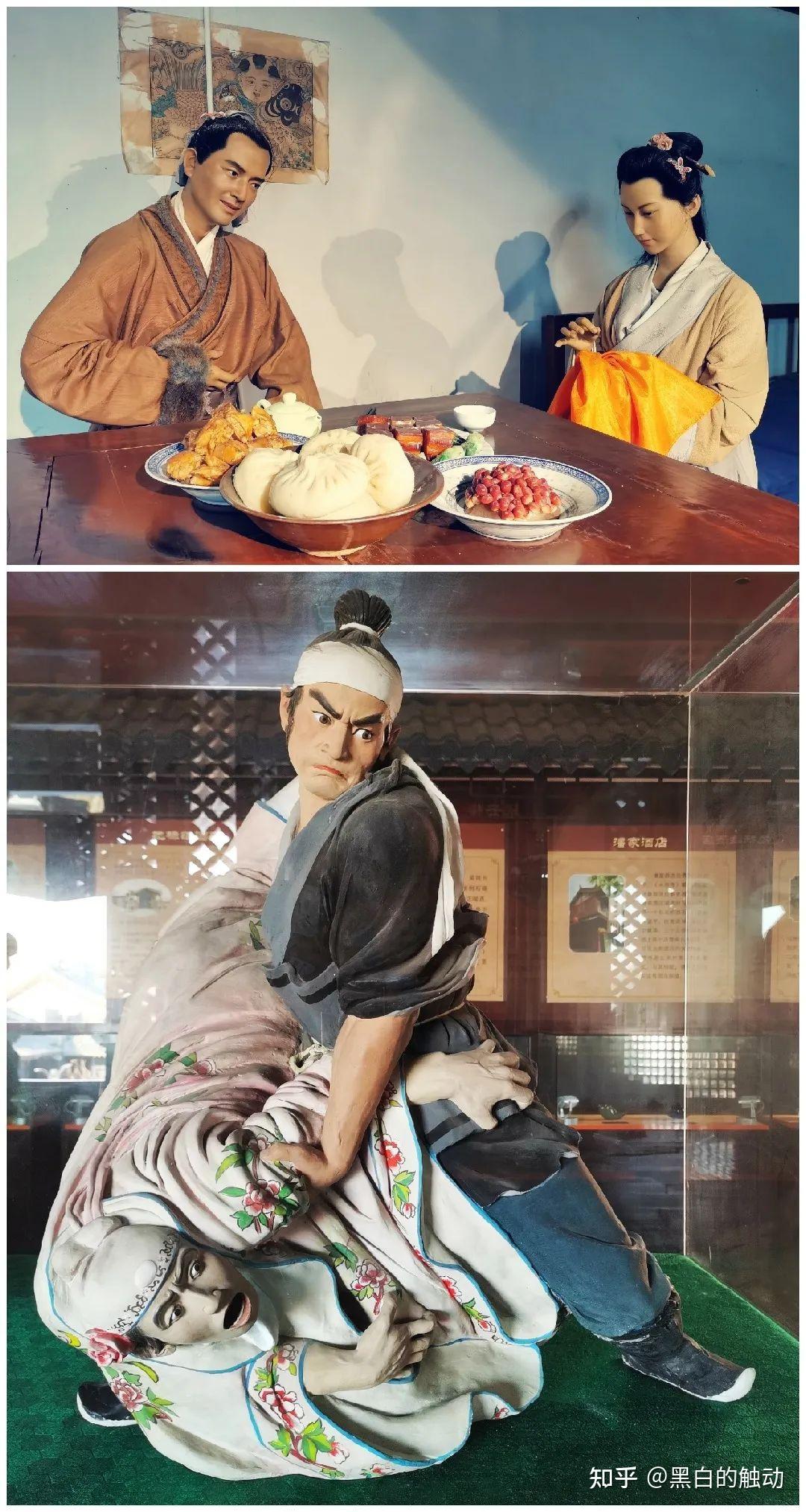 (阳谷狮子楼景区的西门庆、潘金莲、武松形象)