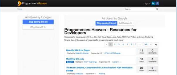 Programmers Heaven也是一个很受欢迎的编程论坛网站。这里有超过1000的帖子帮助你使用C、C++、Java、PHP、Pascal以及更多的语言。它还为开发人员提供工作机会。