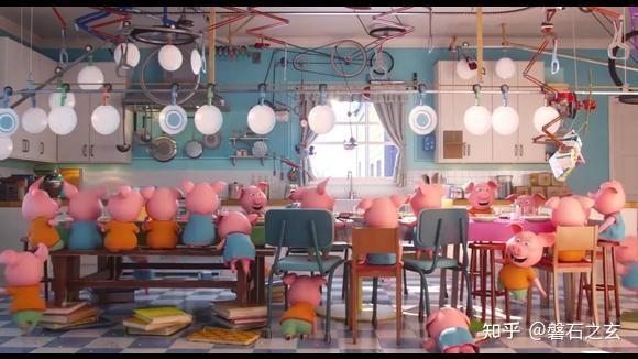 4. 猪妈妈为了挤出排练时间,自制了一整套从小猪们起床到上学到睡觉的自动工具,还要安慰上班不顺遂的老公;
