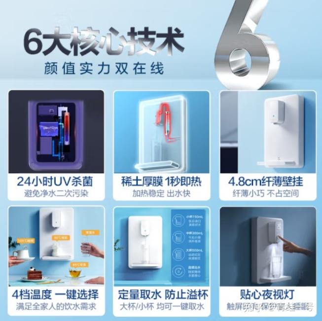 采用6档调节,并配备高端新一代的厚膜加热技术,瞬间即出热水,而且满足多通量的净水器,非常方便,性价比超高。