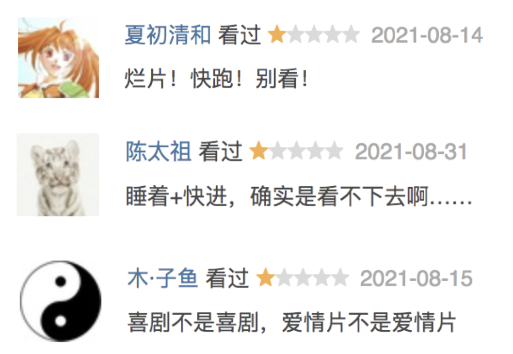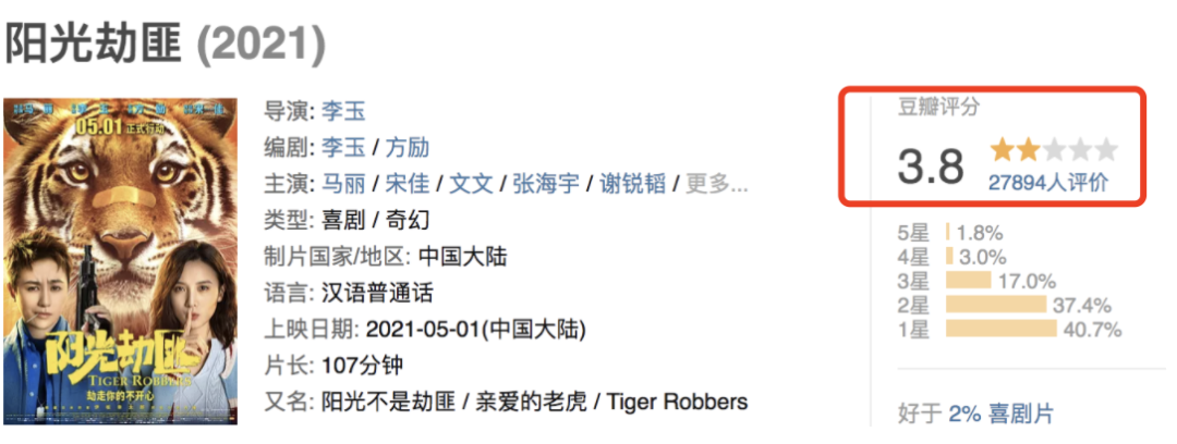 像《李茶的姑妈》、《温暖的抱抱》还有同样是马丽主演的《阳光劫匪》口碑统统跌爆。