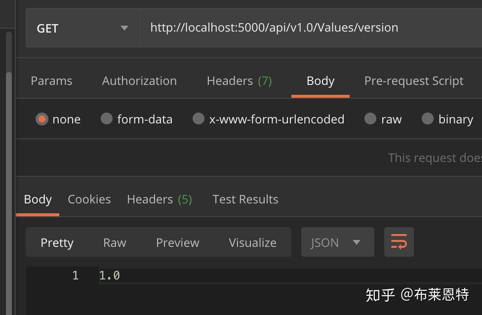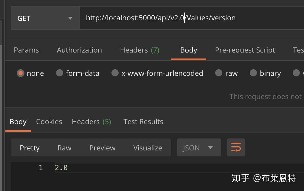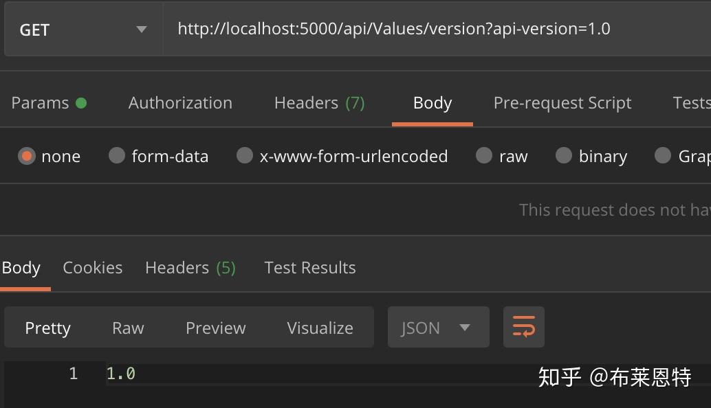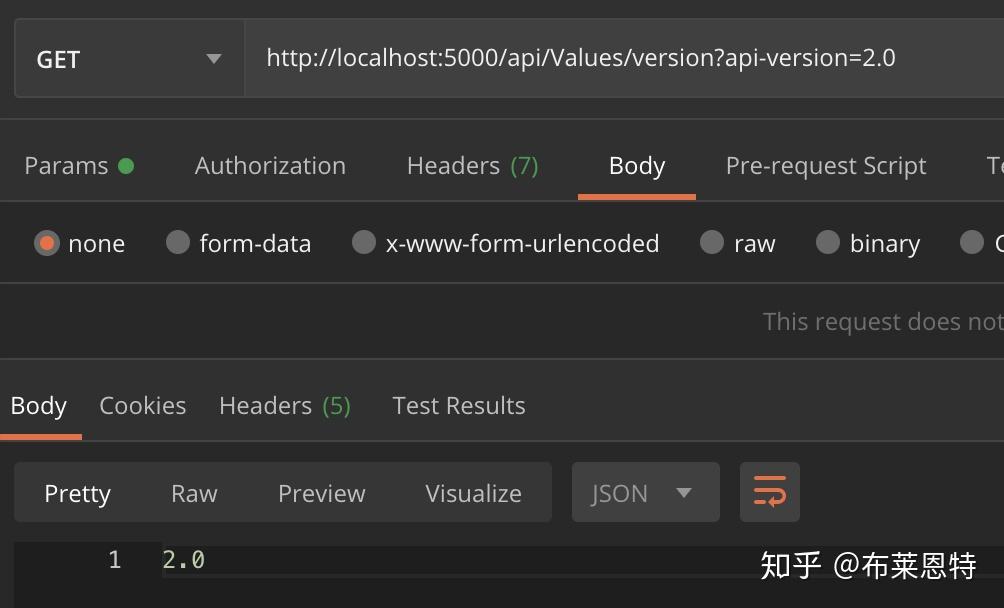 我们通过postman来请求这两个接口当我们没有给到具体请求哪个版本的时候会根据在ConfigureServices中配置的默认版本去执行。