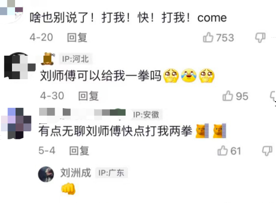 更无语的是,还有一群网友,追崇刘洲成的拳头“求挨打”。