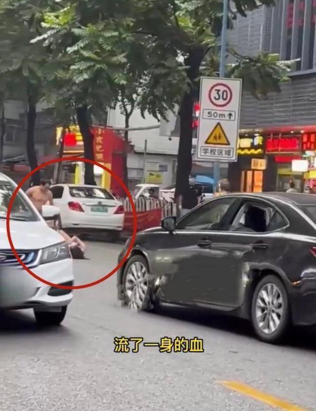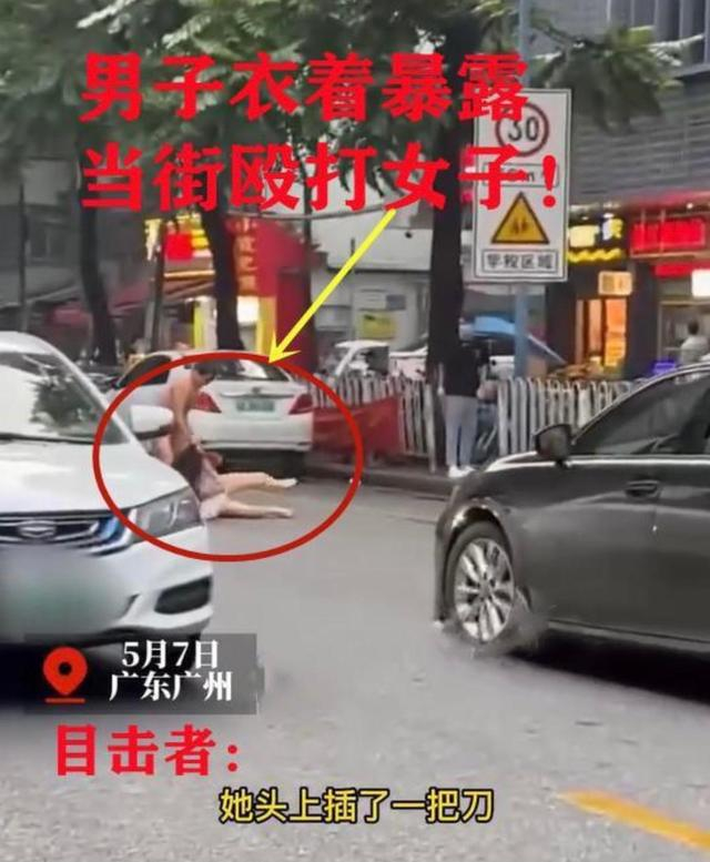 一名半裸男子,在大街上当众殴打一名半裸女子。