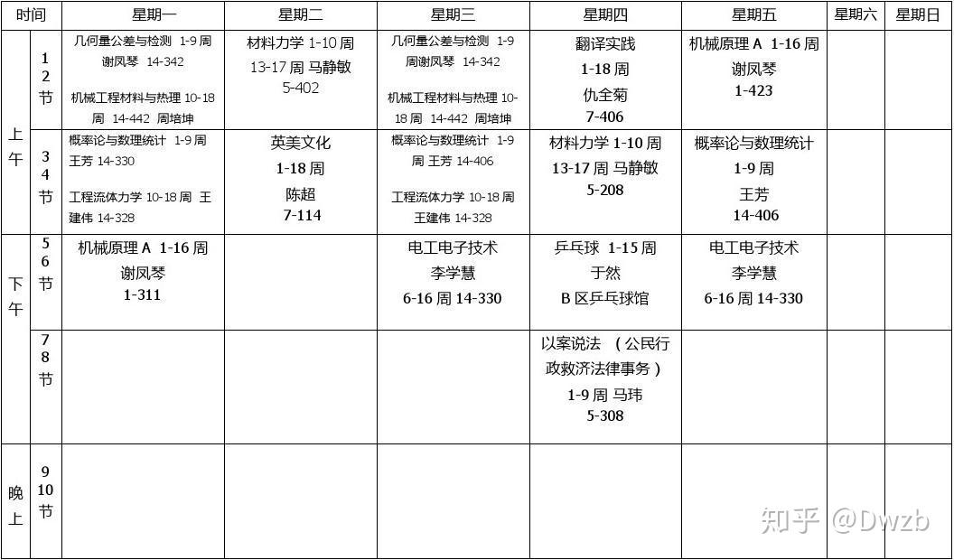 看看上面的课表,你算一算时间,会发现你的工作日剩余时间其实并不多,不过不同专业的课表不同,有的专业课很少很轻松,但是如果选上了医学、建筑这样的专业,课就比较多。有的还修双学位,就是周末还要上课。你还要完成作业,所以你的课余时间并不多。(上面课表中每天都是前面有课,后面没课,实际上不一定是这样的,可能12有课,34没课,56再有课这样跳着的)
