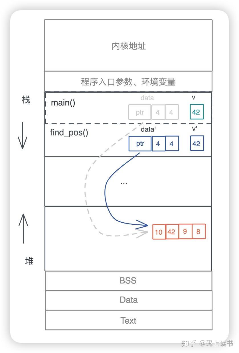 调用find_pos的时候 data 和 v 作为参数传递,放在 find_pos 的参数区。