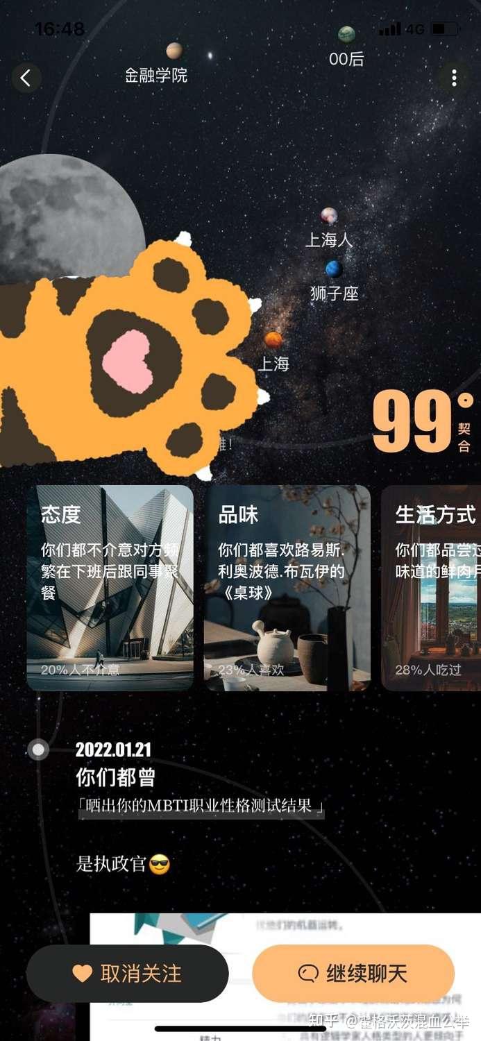 记得有次晚上,和一个很有趣的女生聊我们的共同爱好,双方成为好友后点进经历空间就能看到我们有多少个共同的兴趣了,聊到很晚,最后互道晚安的时候,她对我说:“ 真的是幸会呢! ” 顿时特别理解了这个app的理念!能够在14亿之多的人群中遇见,真的是足够幸会了。