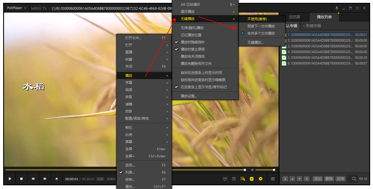 所以,我们可以用一个支持无缝播放的软件来播放这些视频。我常用的是PotPlayer播放器。