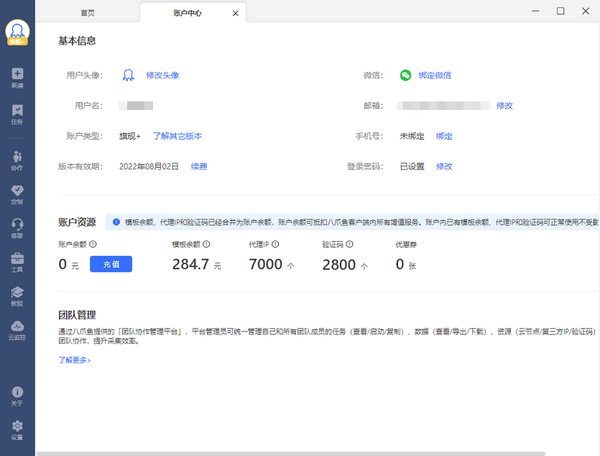 可直接在客户端查看、修改账户信息,进行续费充值等操作,无需跳转网页;