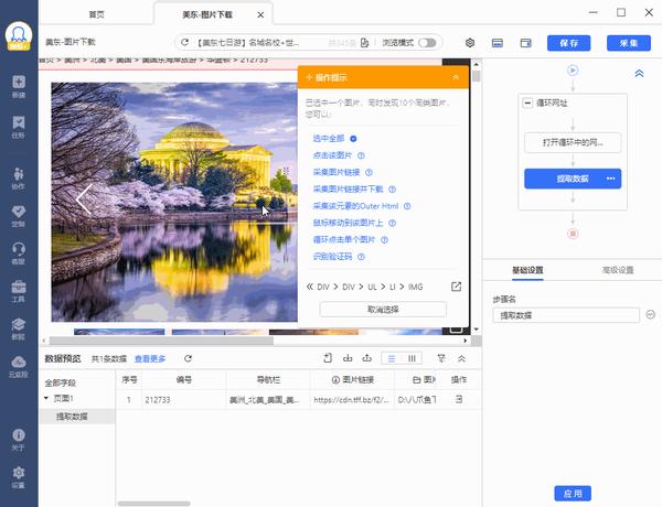 采集过程中,选中网页页面元素,可 智能识别文件类型 并下载,并设置下载文件命名方式;