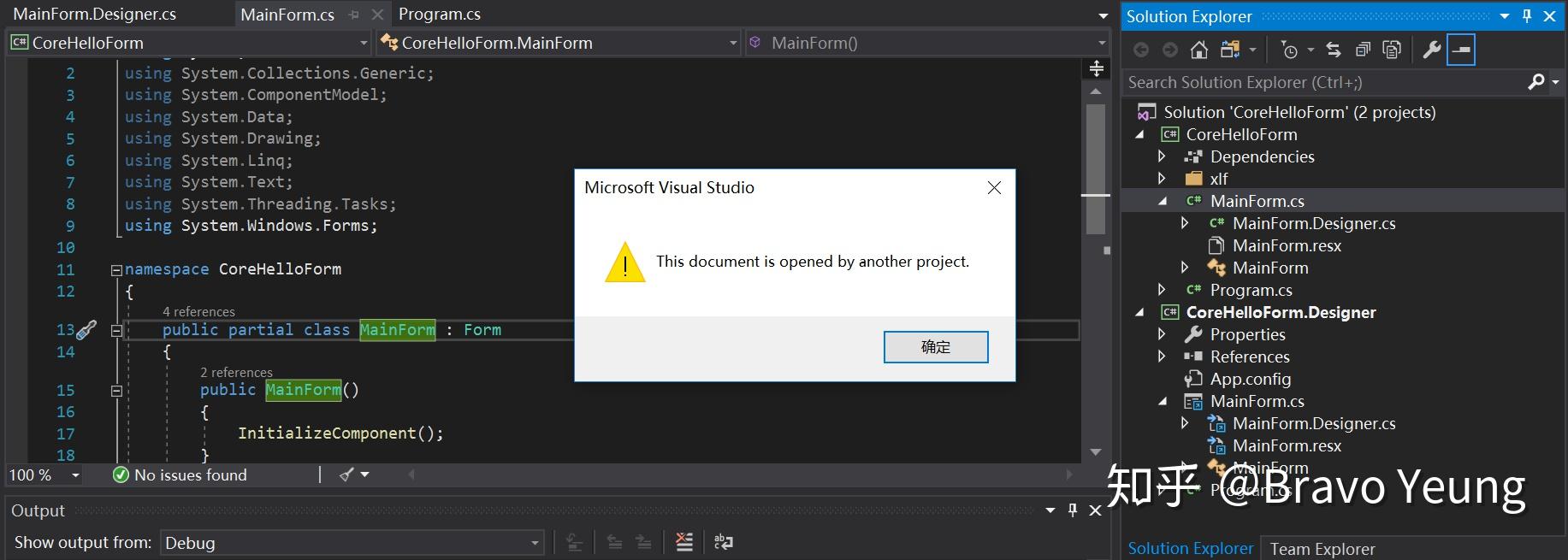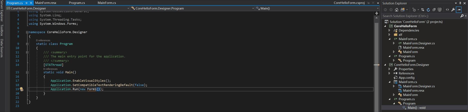 所Link 的与MainForm相关的文件已经在 项目CoreHelloForm 中 打开。