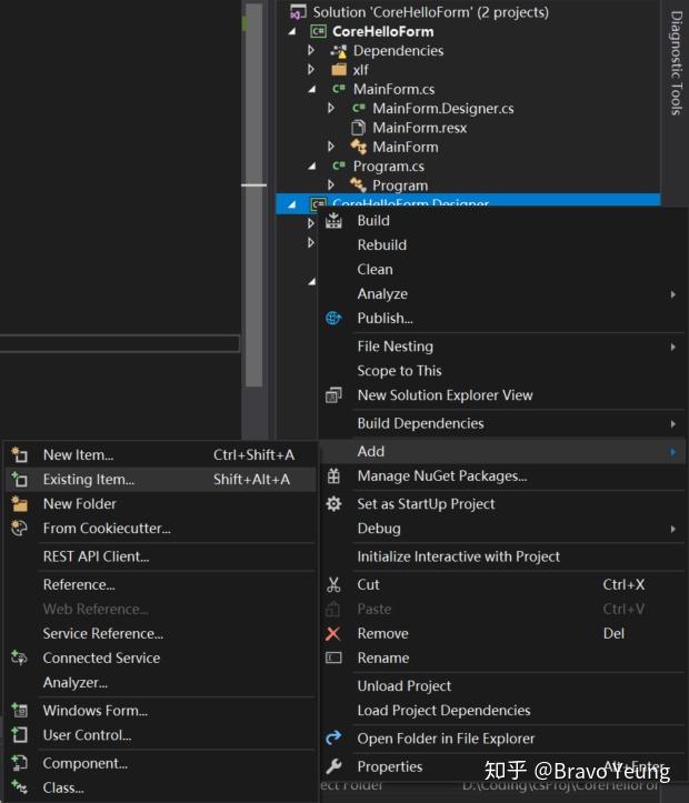 右键 .net core form项目,点击"Open Folder in File Explorer",