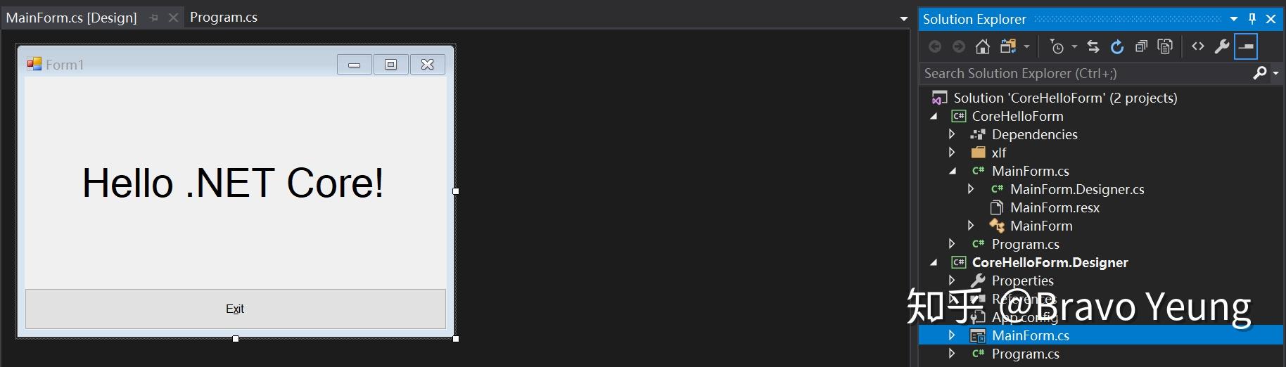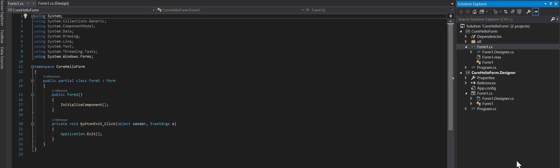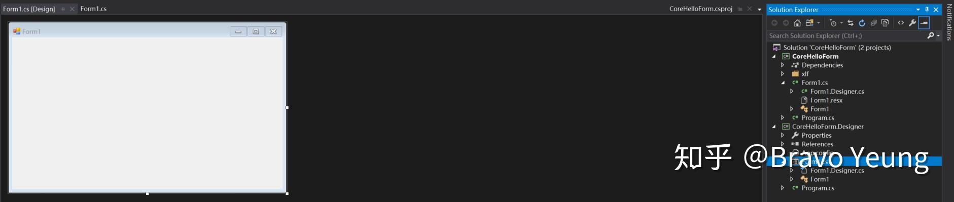 现在,再双击项目CoreHelloForm.Designer中的