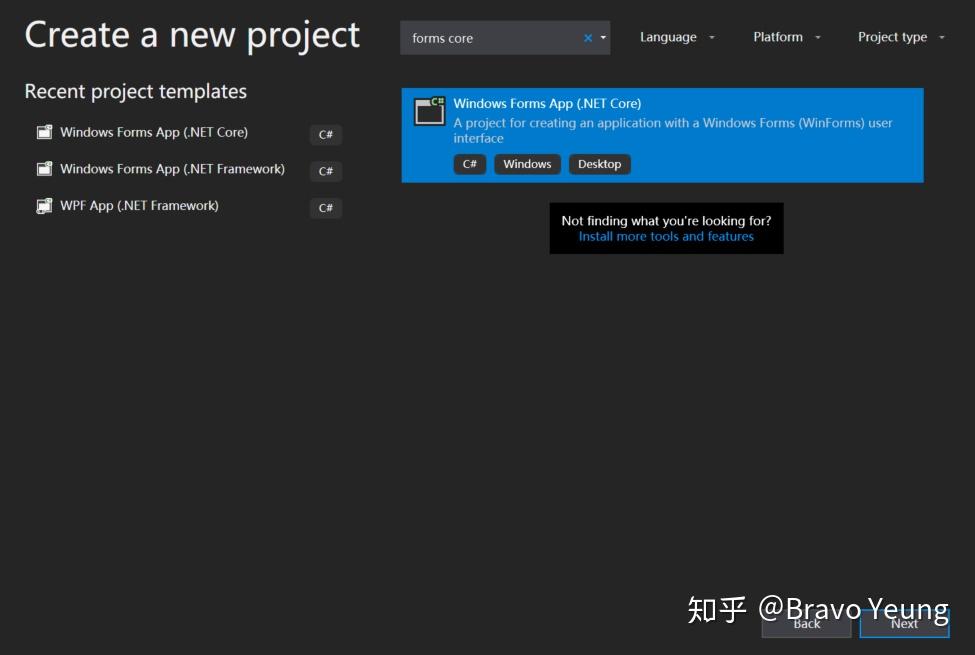 先安装 vs 2019 professional/enterprise版本,安装好.net core 3.0 SDK,此时试着创建一个.net core下的 win forms 应用,