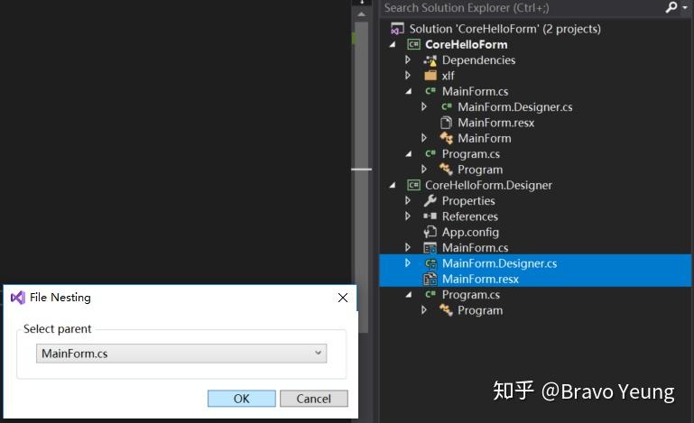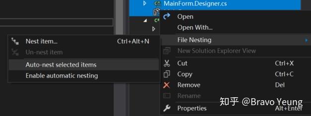 使用 File Nesting来修改 Link 的 MainForm相关文件的层次关系.
