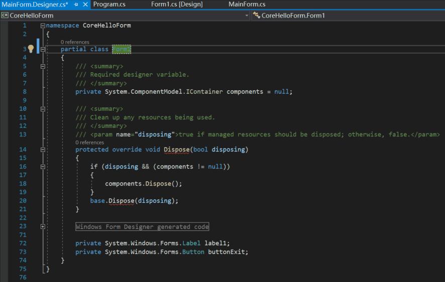 那是因为项目CoreHelloForm.Designer中的