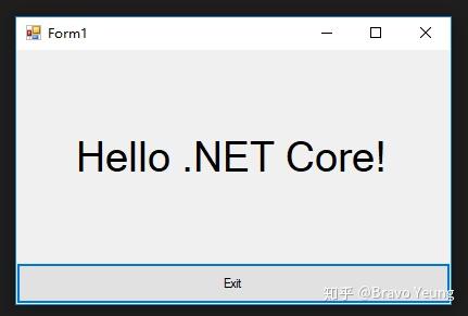 此时,选中 .net core form项目,右键选择 “Set as start up project”,按F5运行项目,可看到窗体: