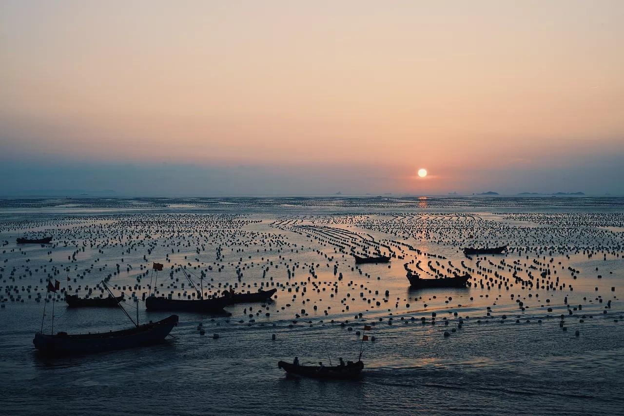 ,对着成片的贻贝养殖基地,落日后的养殖场,仿佛将这个世界的辽阔和美好一网打尽,顿时抛却了凡尘俗世的一切忧虑。