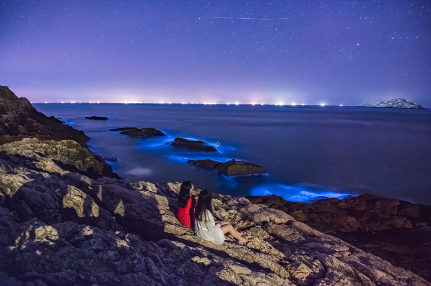 花鸟岛最为有名的还有就是荧光海,可以算是国内罕见的景色哦,在花鸟岛浅海处偶尔会出现蓝莹莹的氤氲微光,好似大海的蓝眼泪,被称之为荧光海,夏季的时候看到的概率会比较大~