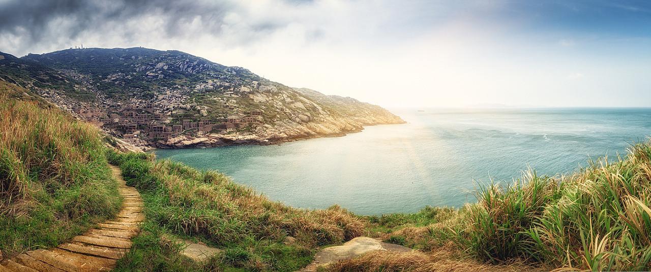 在与枸杞岛一桥相连的嵊山岛上,有个神奇的“无人村”。曾经繁华的村落,因人们向往外面的世界出走而逐渐被遗弃。蔓延至屋顶的爬山虎似乎让这里蒙上了一层神秘的纱,若你身在此处,一定会觉得是穿越到了不可思议的世界。远观被国外称为真实版“绿野仙踪”的无人村。