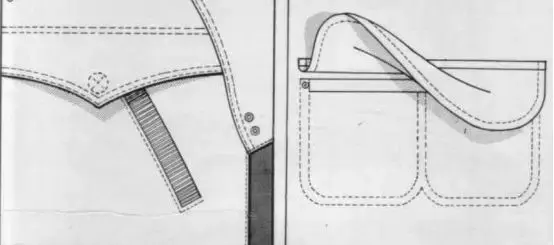 在款式图的绘制中,设计师需要将衣服内里部分的设计细节全部绘制出来,而且那些细小的画不清楚的地方还要单独放大绘制,如下图: