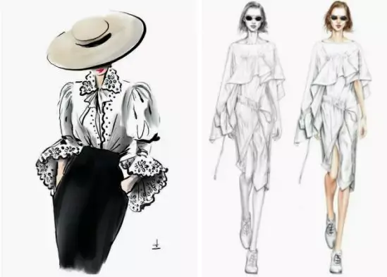正如楼上答主所说,题主首先要明确自己所指的是服装款式图还是服装效果图。一般情况下,效果图呈现的是设计最终的形态,展现的是自己的设计理念,因此这样的图更注重视觉效果,但并不适合单独拿效果图给版式和样衣工看: