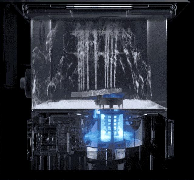 洗碗机的工作原理,是喷臂不断将带有洗涤剂、漂洗剂的热水,以一定的压力,由上向下、三维方向均匀密集地喷射到餐具表面,进行强力冲洗。