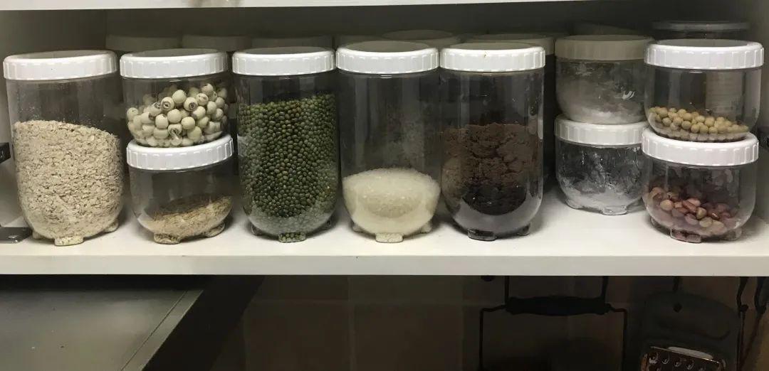 我很喜欢塑料收纳,它最大的好处就是轻薄~塑料瓶放在吊柜里装杂粮,可以减轻荷载。
