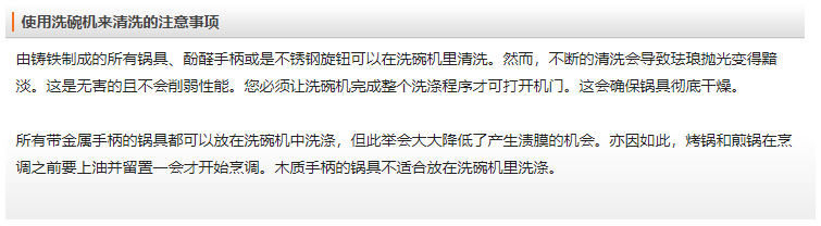 下面是LC官网关于使用洗碗机的注意事项的总结,其中提到木手柄的珐琅锅,不适合用洗碗机来洗涤。