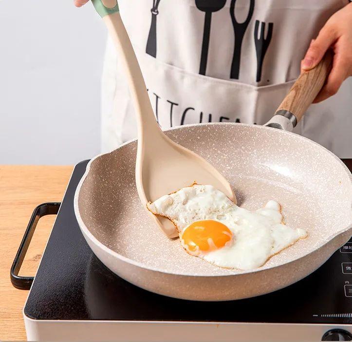 如果你用不粘锅当炒锅,就不能选择不锈钢锅铲了,因为不锈钢锅铲硬度高,使用中会破坏不粘涂层——这可能比洗碗机的瞬时压强还要大!