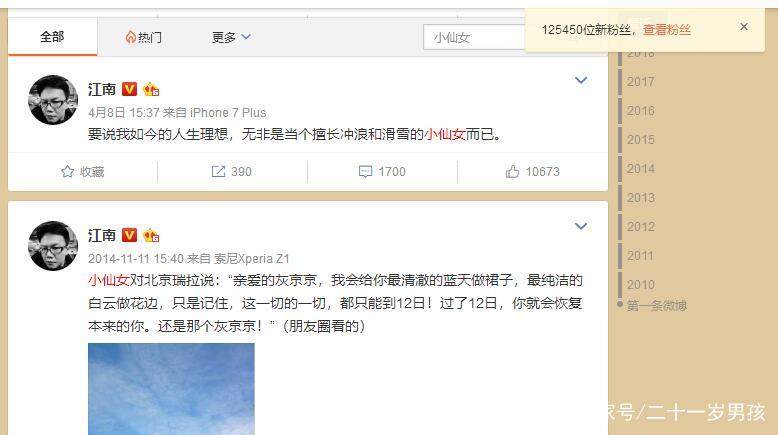 江南:保持少年是我们永远年轻热血和勇于和庸俗对抗的一种有效手段,现在我是不知道我是否能一直保持它的,但我会努力去做的。(二十一岁男孩:江南老师一直在微博上称自己是可爱的小仙女,这问题的答案很明显。)