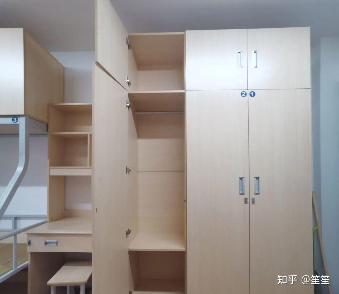 接下来就来介绍一下我们的宿舍,宿舍是豪华三人间!上面是柜子下面是床,还有一个大衣柜三个人隔开,床下也有柜子,总之东西不怕放不完。宿舍独立卫生间,独浴,热水是24小时的不过需要校园卡,平常的水都是无限量供给不收水费嘿嘿嘿!