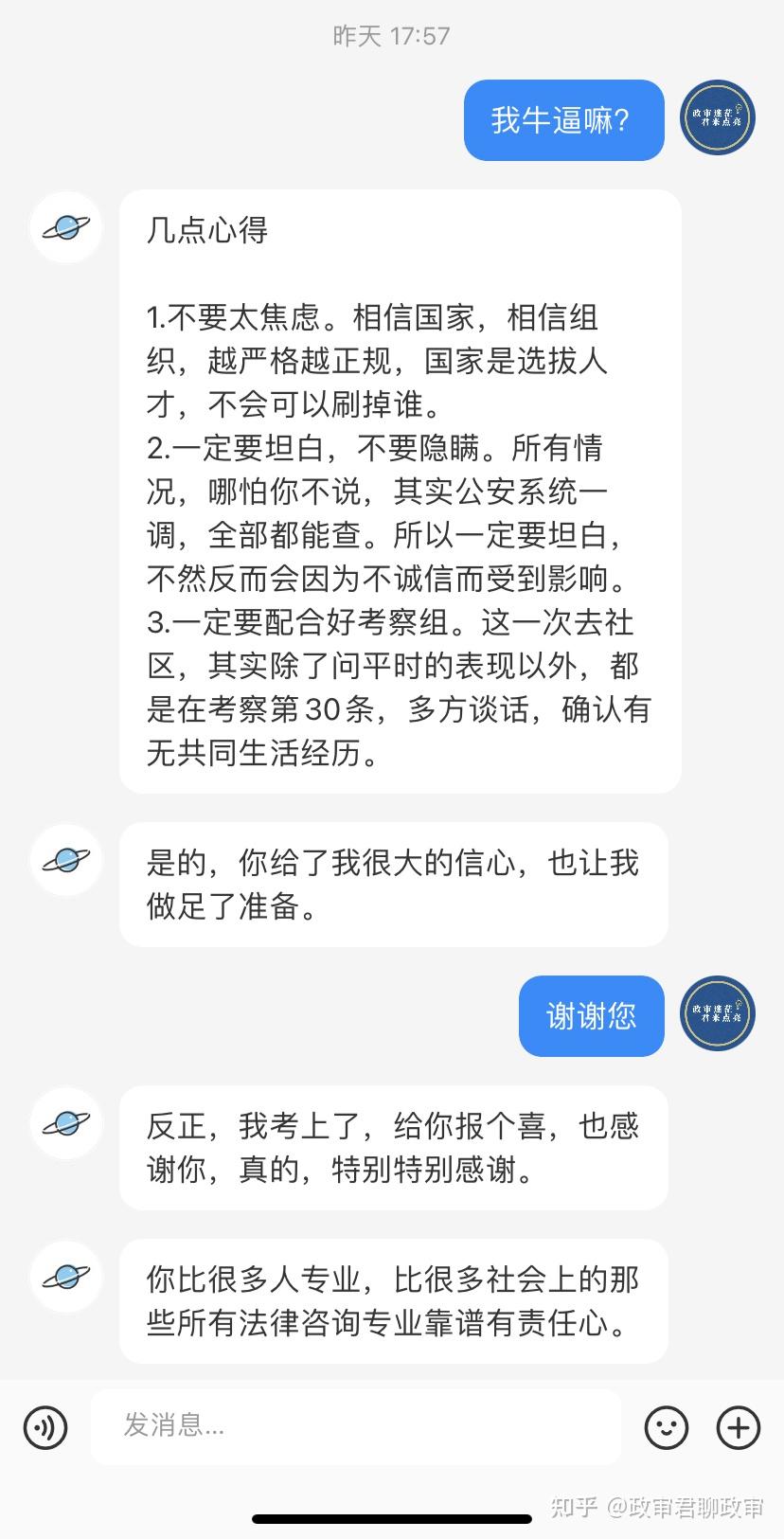 我是政审君,我咨询见过的上千案例,不是吹的!