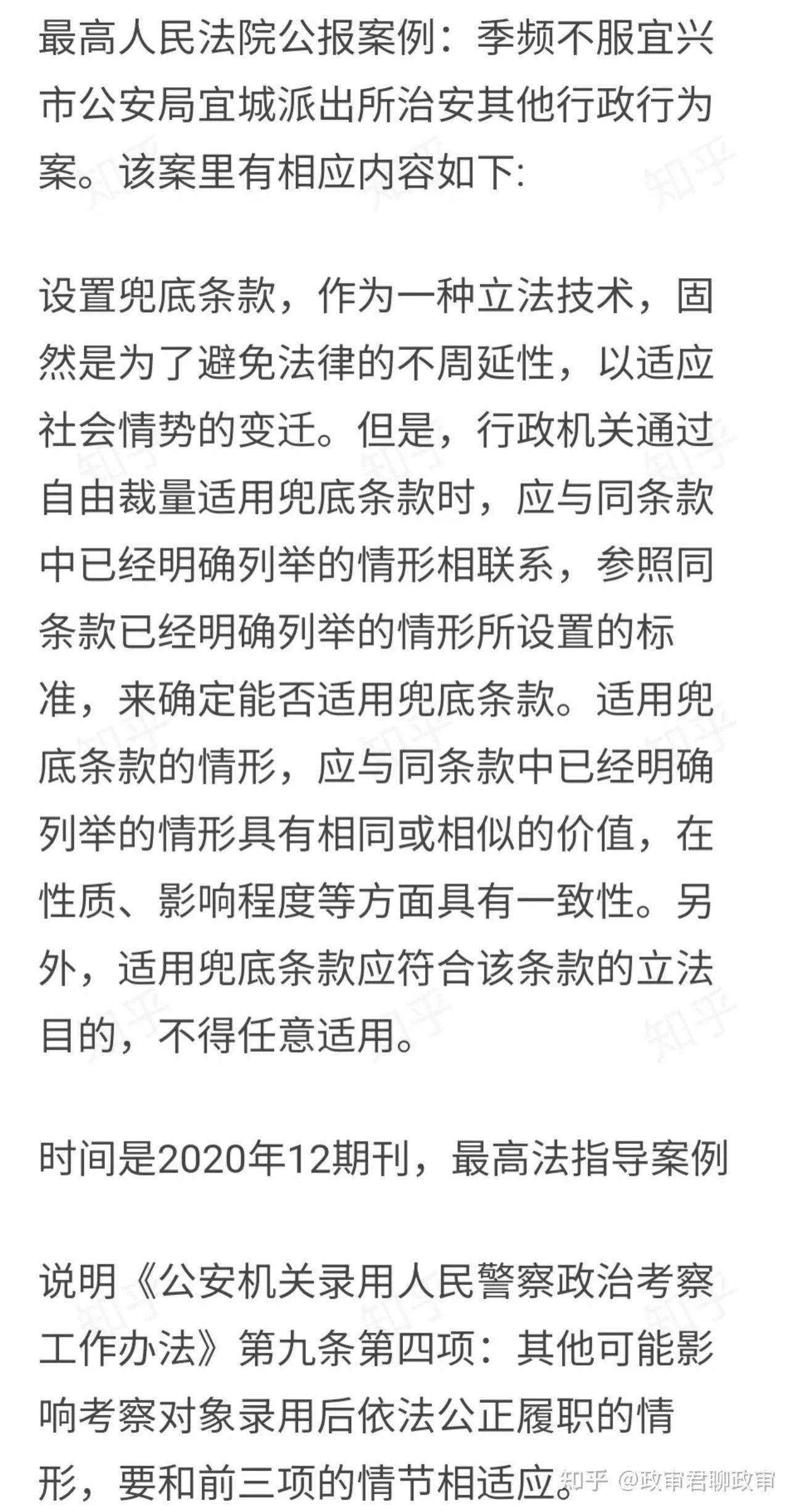 关于兜底条款的设立和作用,一位公检法在职政审工作者已经给出的答案。大家看下图!
