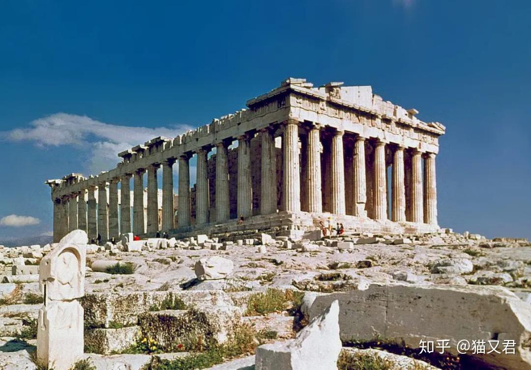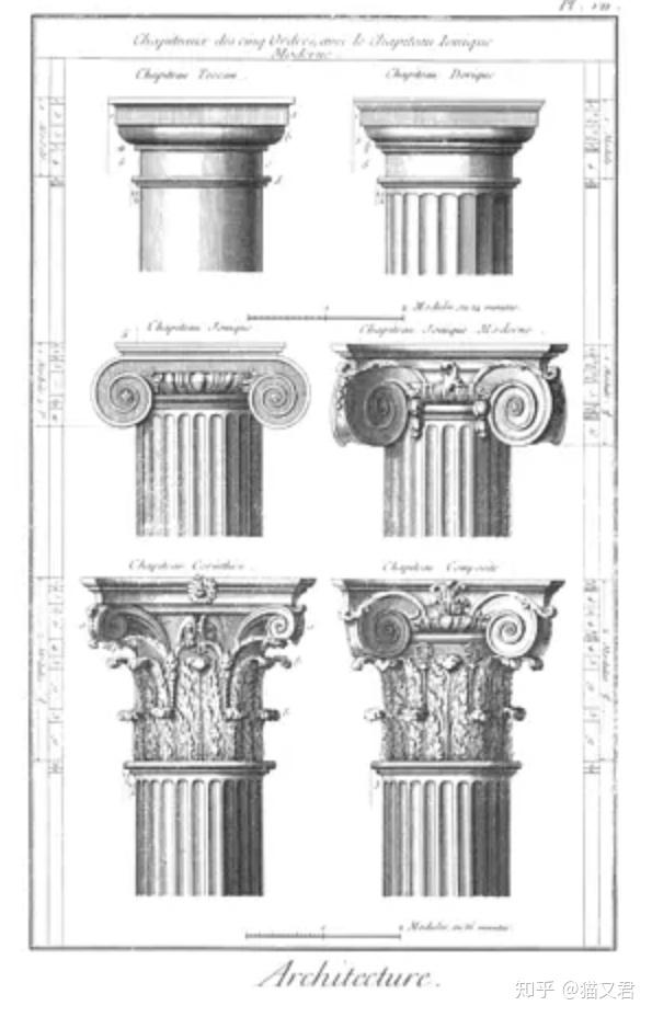 希腊爱奥尼柱式(Ionic Order)的特点是比较纤细秀美,柱身有24条凹槽,柱头有一对向下的涡卷装饰,爱奥尼柱又被称为女性柱。爱奥尼柱由于其优雅高贵的气质,广泛出现在古希腊的大量建筑中,如雅典卫城的胜利女神神庙(Temple of Athena Nike)和伊瑞克提翁神庙(Erechtheum)。