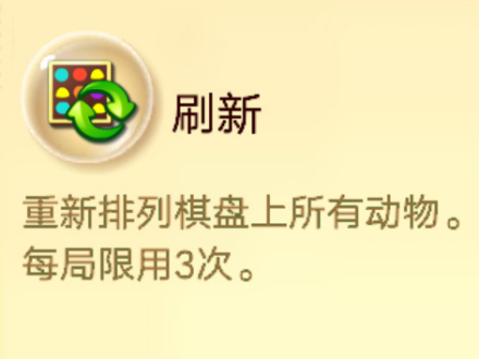 重新排列棋盘上的所有动物,每局限用3次,使用过3次后当局不能继续使用 。