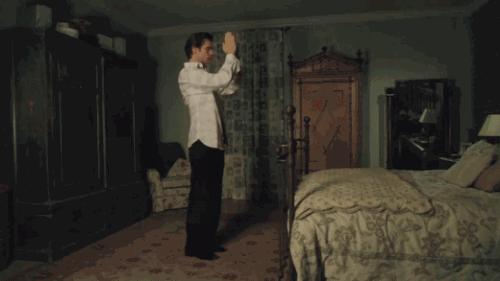 在《神探飞机头》中这段发挥就是神来之笔。先是自己慢镜头表演(没错,这是表演出来的“慢镜头”)。