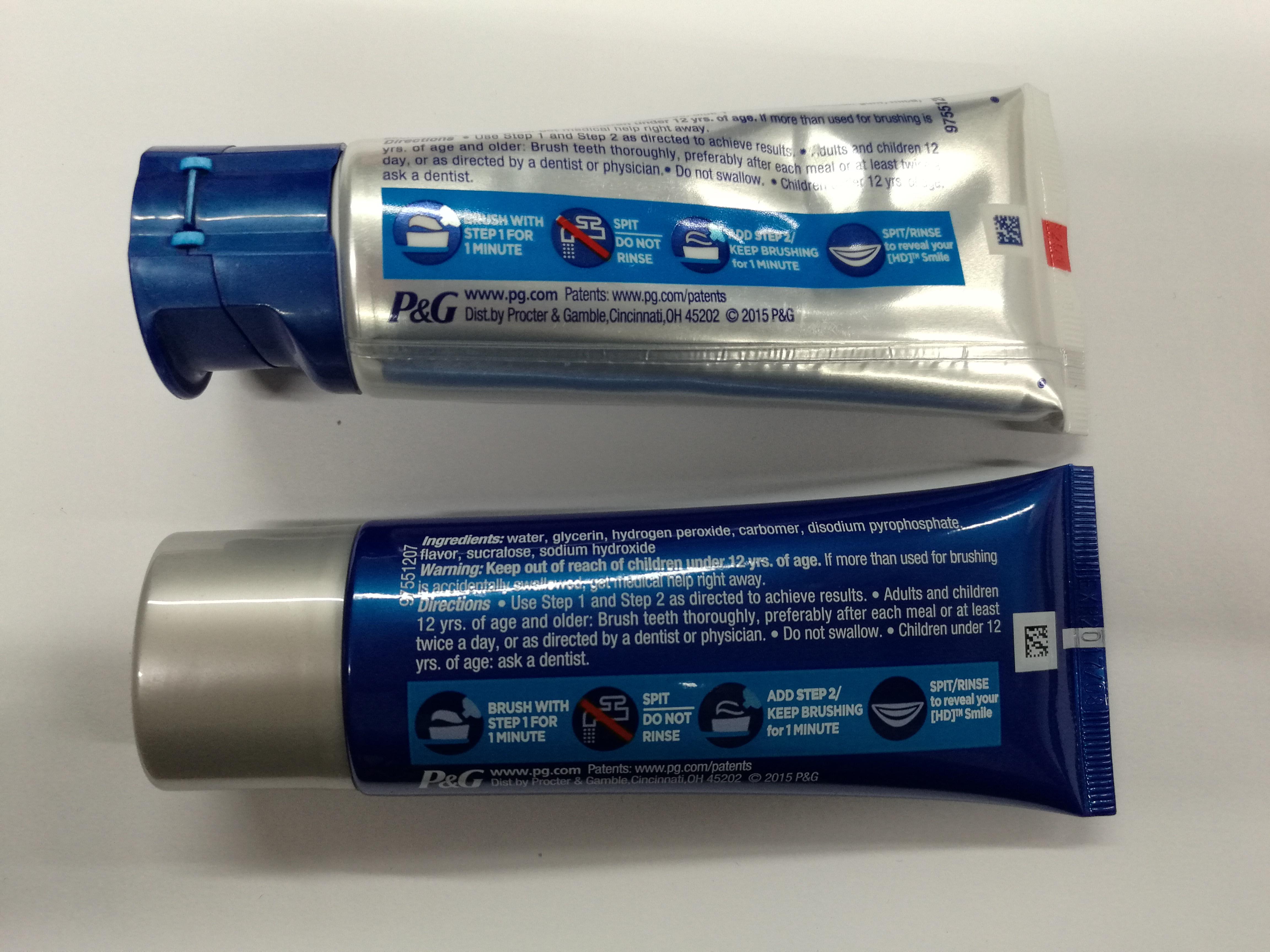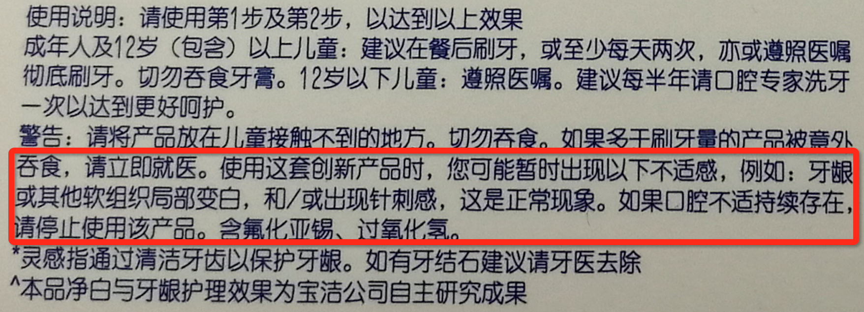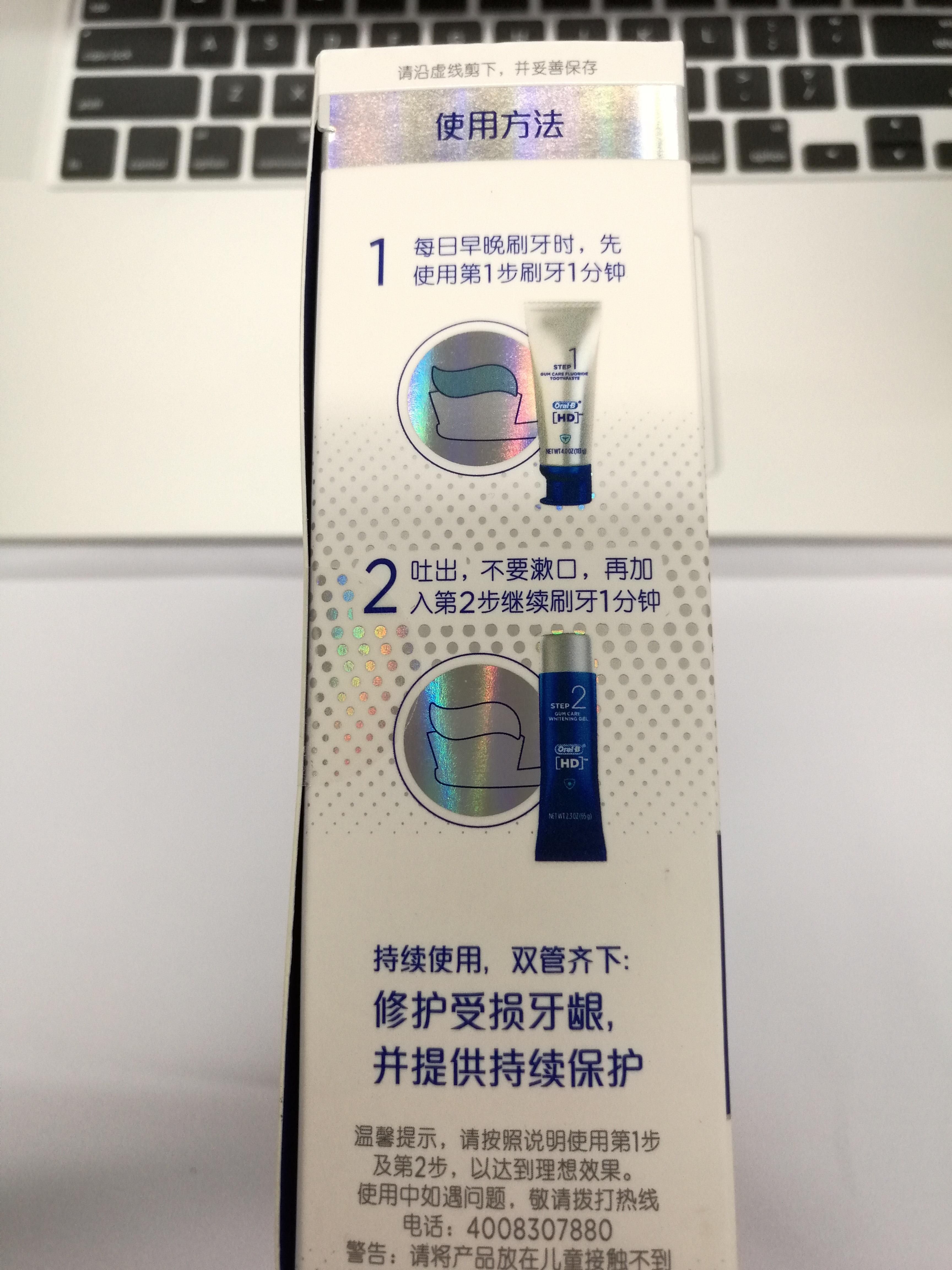 背面很明确的标注了使用的方法,大概就是先用第一管刷一分钟,吐出泡沫不要漱口,再用第二管刷刷刷,刷完再漱口,但是当时有个东东我没仔细看,后来刷牙的时候才发现,后面再说。