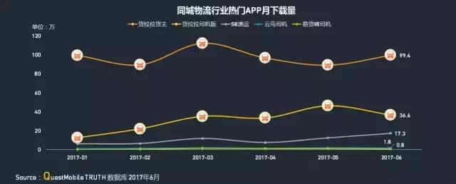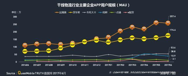 QuestMobile以移动细分行业中的同城物流行业和干线物流行业为主要研究对象,统计了2016年6月至2017年6月的数据,发布了题为《2017年上半年·移动互联网货运行业洞察》的调研报告,以详实的数据,分析了该行业的主要企业。