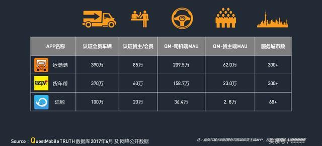 从网络公开数据来看,运满满和货车帮是行业领跑者,从运营相关数据来看竞争也十分激烈。